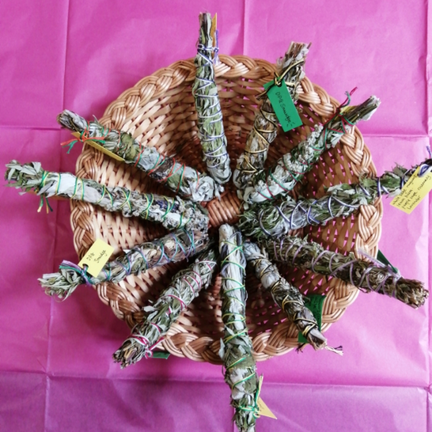 Our Physic Garden Smudge Sticks are hand-crafted with a selection of physic garden aromatic herbs and always include Mugwort and White Sage wotj a selection of Purple Sage, Lemon Balm, Lavender, Wormwood or Rosemary. Smudging is a traditional Native American method of burning herbs to produce a smoke cloud which is used in various cleansing, prayer ceremonies and purification or healing rituals. The process of smudging enhances sensitivity an in some instances alters the state of consciousness. Smudging has an important place in Native American Spiritual Healing. The smoke was believed to disperse impurities allowing the healing process to commence. As the smoke rose it was believed that prayers would also rise to the Spirit World and negative thoughts, emotions were lifted away. Most of the herbs for smudging have antiseptic qualities and the process of burning herbs really does purify the air. Some of the herbs contain aromatic compounds that can reach the brain on inhalation.