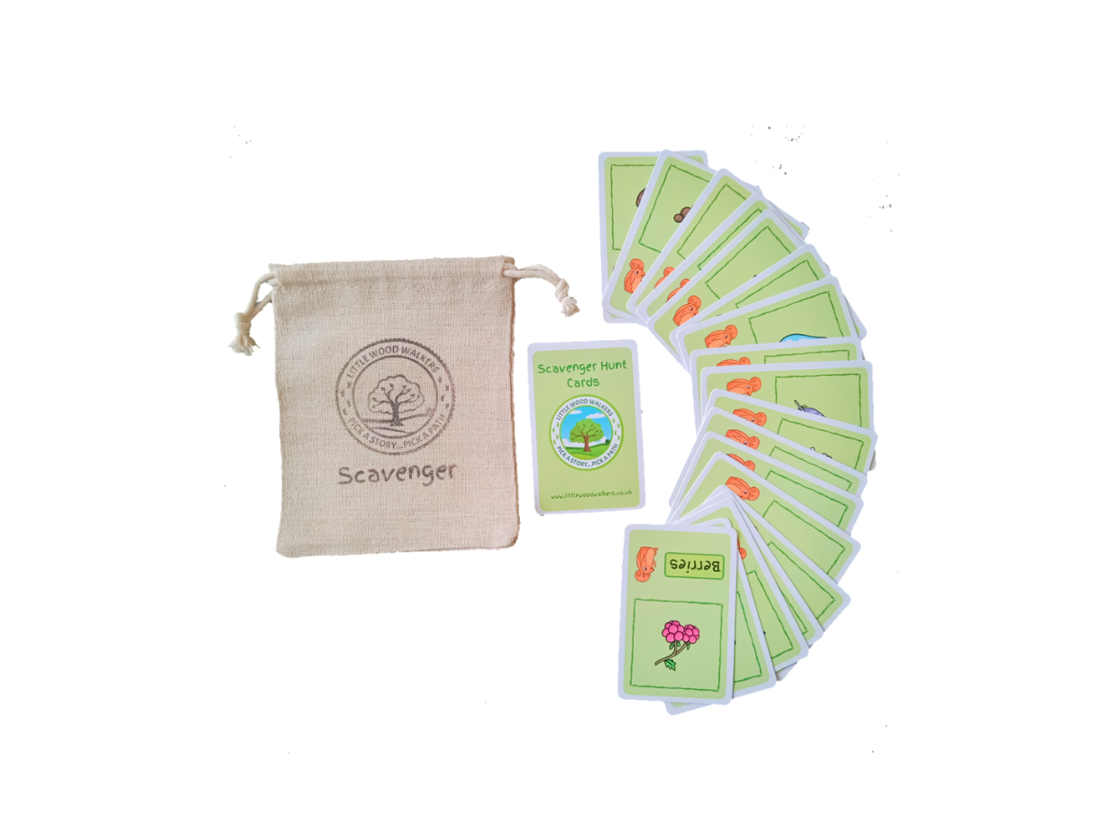 A pack of rain-proof scavenger cards with 34 different items to be found on your walks through your favourite woodlands.